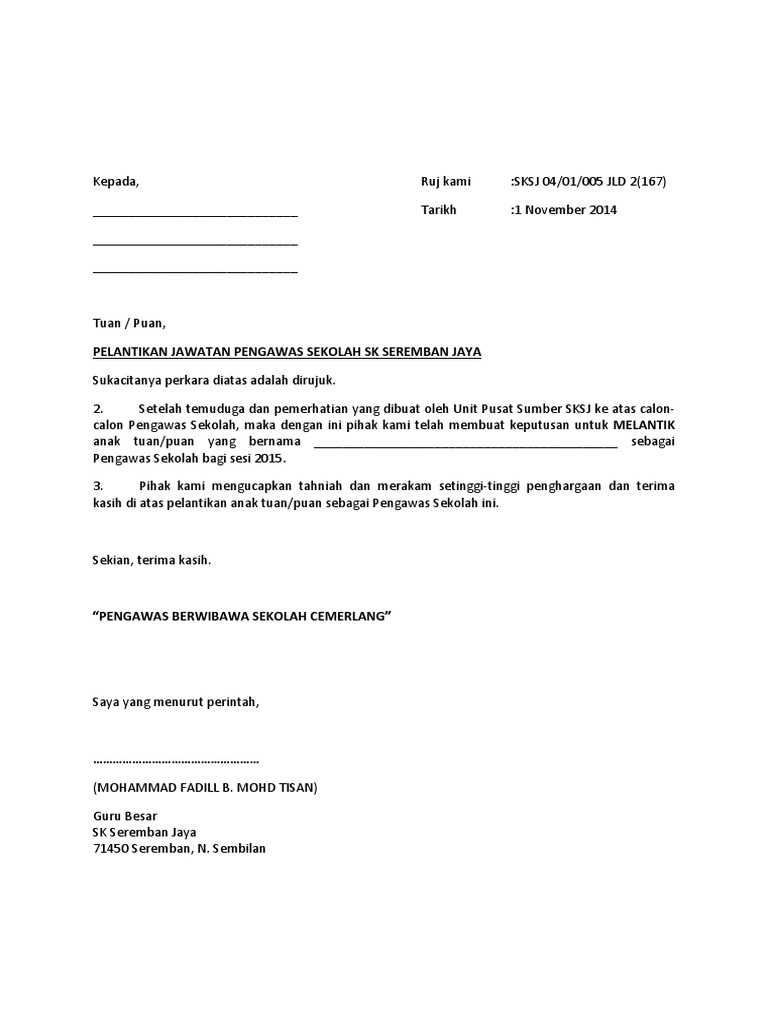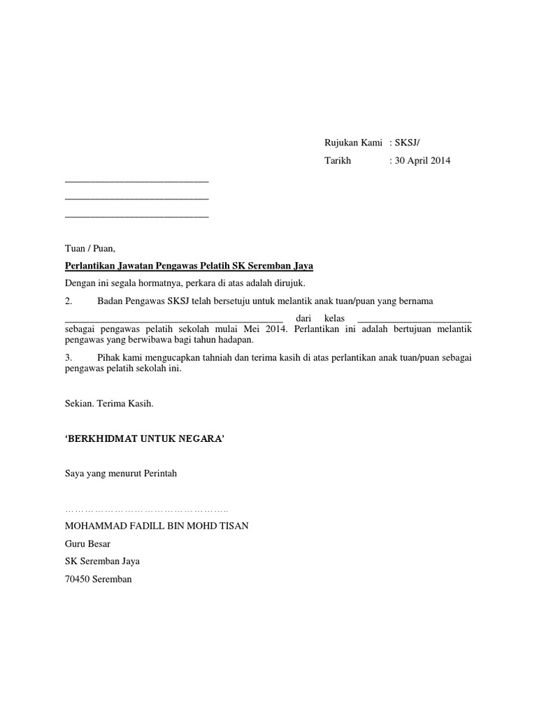 Contoh Surat Rasmi Pelantikan Pengawas Pdf